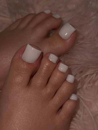 24pcs Square Minimalist French Solid Color Press-On Nails, Artificial Nail Strips Set - Suitable For Students, Ladies Parties, Dates, Everyday Wear To Enhance Your Look - White - View 1