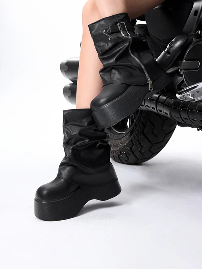 DareSee Women's Thick Sole Lace-Up Boots, Black Platform Ankle Boots With Buckle Strap, Autumn New Style Winter Gifts - Black - View 1