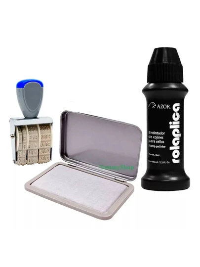 Date Stamp Day Month Year P Office Business + BLACK Ink + Cushion - Black - View 1
