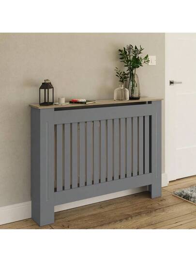 Deluxe- Longslow Medium Grey Radiator Cover Slatted Wood Design Top Shelf Display Living - default - View 1