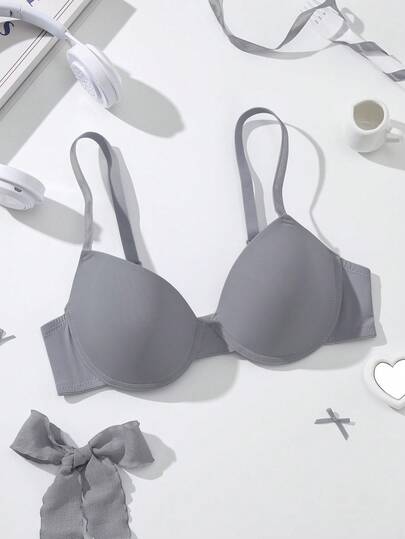 DesireSculpt Women's Minimalist Solid Color Underwire Push-Up Bra - Light Grey - View 1
