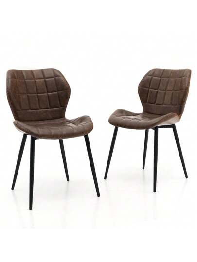 Dining Chairs Set Of 2 Modern Kitchen Chairs With Padded Back & Metal Legs Mid Century Side Chairs For Living Room - Brown - View 1