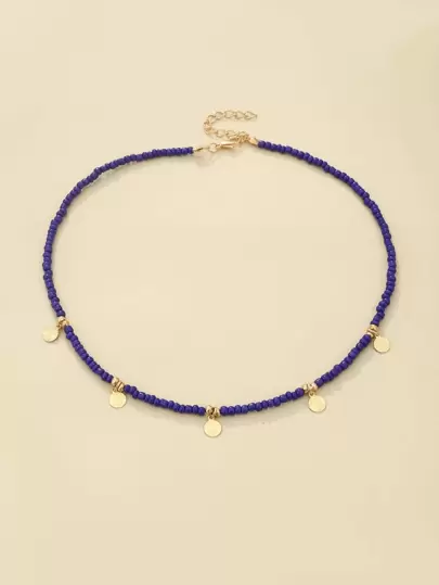 Disc Charm Beaded Necklace - Royal Blue - View 1