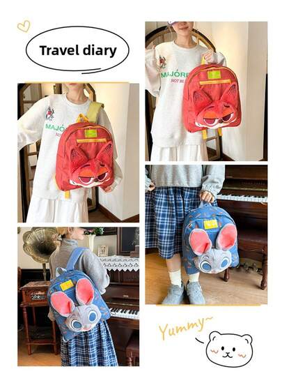 Disney Zootopia Nick Fox & Judy Rabbit Plush Backpack, Multi-Functional Large Capacity Cute Cartoon Backpack For Girls And Students, Travel Companion, Dopamine Matching Tote Bag & Shoulder Bag - Multicolor - View 10