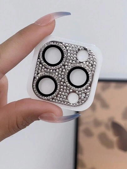 Diy Luxury Rhinestone Camera Lens Protection Ring Compatible With Iphone 14, Apple 15 Pro Max, 13 Pro/Plus Camera Lens Protective Film - Silver - View 1
