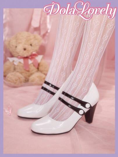Dola Lovely Women's Classic Retro Mary Jane Round Toe Black & White Contrast High Heel Pumps - White - View 1
