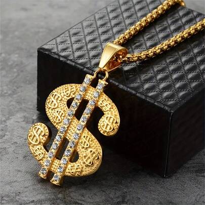 Dây chuyền hình đô la, mặt dây chuyền tiền phong cách hip hop bằng thép không gỉ mạ vàng bạc kèm dây chuyền, quà tặng trang sức cho nam giới yêu thích nhạc rap.