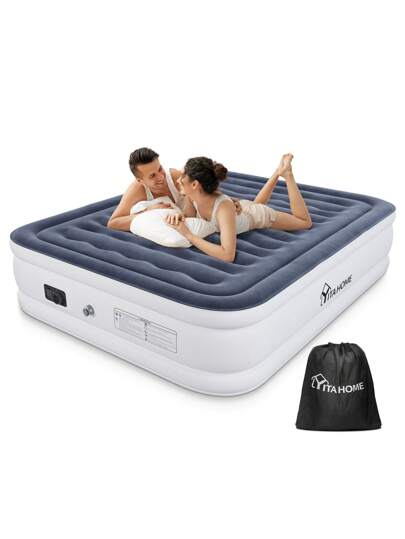 Double Inflatable Air Bed Built-In Pump High Raised Mattress Camping King Size - Grey - View 1