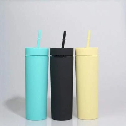 Cốc nhựa hai lớp, bình nước nhựa dung tích lớn, cốc nhựa có ống hút thẳng chất lượng cao dành cho học sinh, bán sỉ trực tiếp từ nhà máy.