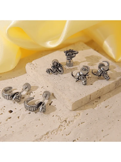 Dragon, Snake, Cow Animal Series Body Piercing Set for Halloween Gifts - Silver - View 1