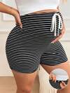 SHEIN Plus Size Maternity Striped Shorts With Tie Waist