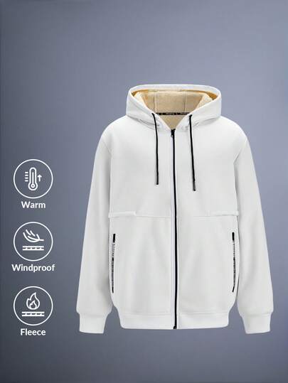 Driftmere 1pc Men's Thermal Lined Zip-Up Hooded Jacket, Casual And Versatile Fleece-Lined Jacket, Fall/Winter - White - View 1