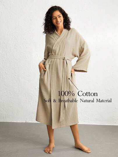 Ocili Leisure Drop Shoulder Belted Lounge Robe - Grey - View 7