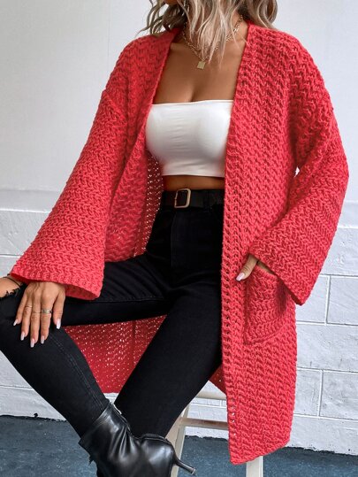 SHEIN Essnce Dual Pocket Drop Shoulder Cardigan - Red - View 1