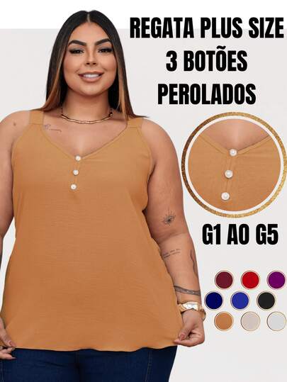 6. Duna Women's Plus Size Tank Top With Pearl Buttons GG G1 To G3