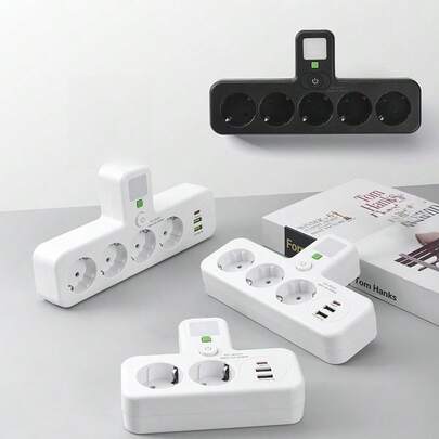 Durable 2/ 3 / 4 Plugs EU Plug Outlet Type-C Ports Universal Wall Power Wall Mounted Adapter Home Offices - EU E Type Plug(220-240V) - View 1
