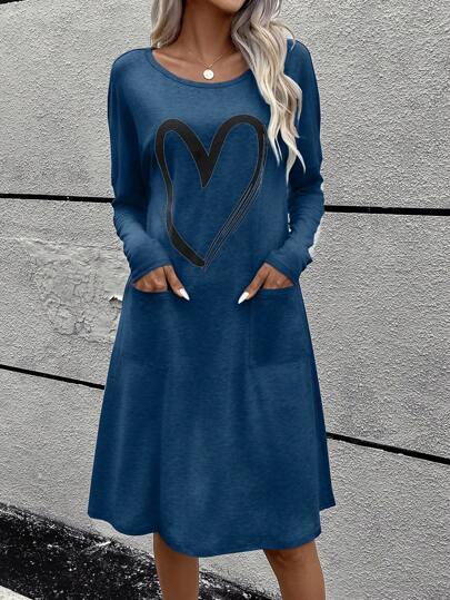 In Trái tim Túi Kép tay cánh Váy áo thun