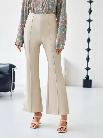 SHEIN Clasi High Waist Flared Leg Seam Detail Pants - Khaki - View 1