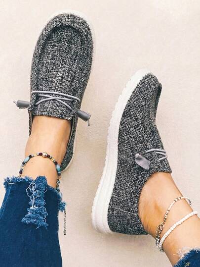 Fall/Winter Sporty Grey Slip On Shoes For Women, Minimalist Lace Up Decor Sneakers - Grey - View 1