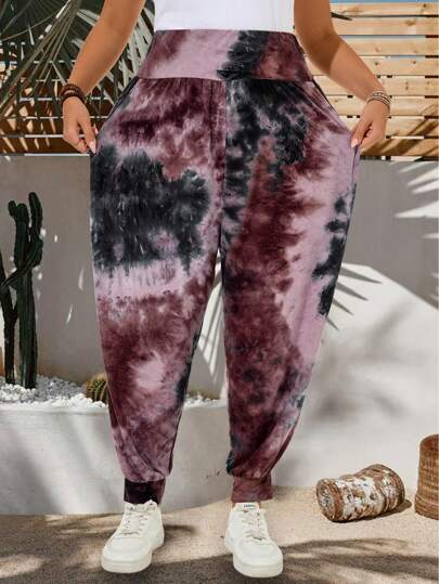 EMERY ROSE Plus Size Women's Casual Cropped Tie-Dye Knitted Pants With Pockets - Multicolor - View 1