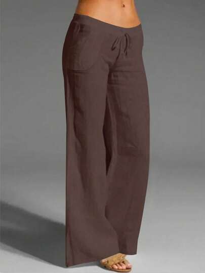 EMERY ROSE Women's White Linen Pocketed Casual Spring/Summer Long Pants Fall Cloth For Women - Coffee Brown - View 1
