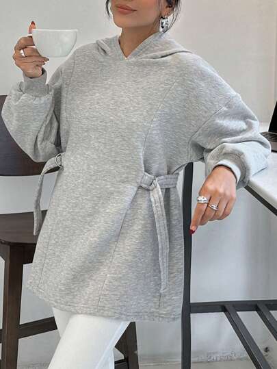 EURMUSE 100% COTTON WOMAN GREY SWEATSHIRT WITH METAL BUCKLE - Grey - View 1