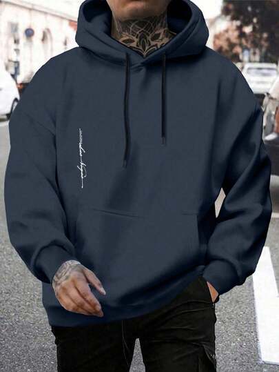 EURMUSE Men Cottonline Letter Printed Regular Hoodie - Navy Blue - View 1