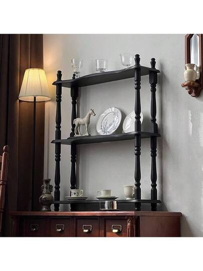 French Retro Storage Shelf, Rustic Wooden Tableware Coffee Cup Display Multi-Layer Wall Mount Shelf For Living Room - Black - View 1