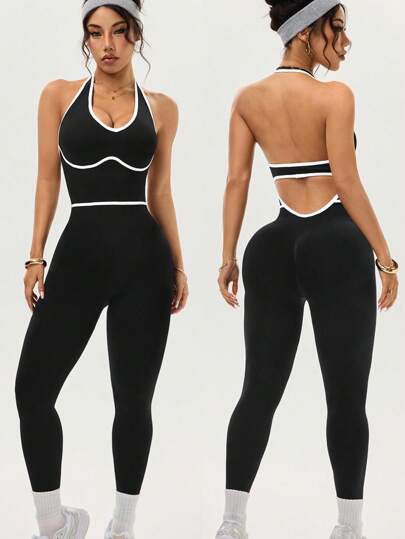 Easithlete Women's Backless Racerback Jumpsuit Workout Pants - Black - View 1