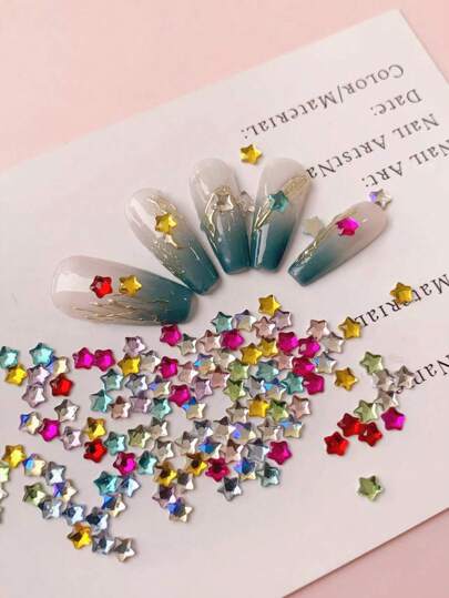 1 Bag 50 Pcs Flat Bottom Color, Star, Pentagram Glass Drill, Nail Art Decorations Diy,Summer Style,Nails Charms Nails Gems Nail Supplies Nails Nail Rhinestones - Multicolor - View 1