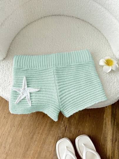 Elamini Pink Starfish Knitted Shorts - Mint Green - View 1