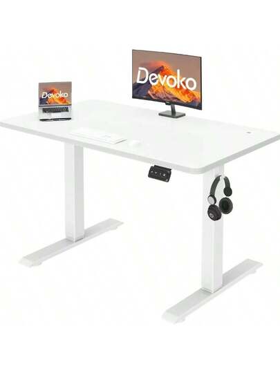 Electric Standing Desk 100x60cm Sit Stand Table Height Adjustable Desk With Backpack Hook And Memory Smart Pannel, Home OfficeTable With Splice Board, White - White - View 1