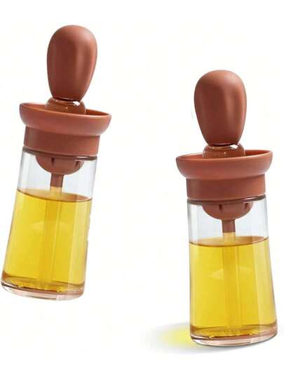 2x Oil Dispenser With Brush 180 Ml, 2-In-1 Glass Oil Storage Bottle With Silicone Brush Dispenser, Olive Oil Dispenser Bottle, Squeeze Dropper For BBQ, Baking & Cooking - Brown - View 1