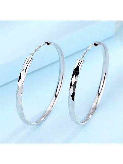 Elegant 1 Pair 925 Silver Plated 50MM Big Hoop Earrings For Women Fashion Charm Jewelry Wedding Birthday Party Gift - Silver - View 4