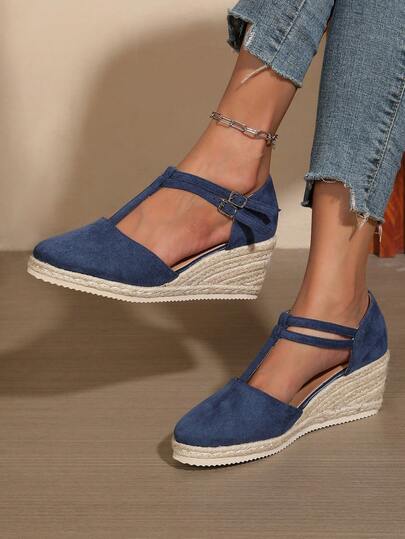 Elegant Fashion Casual Versatile Daily Commute Solid Color Casual Commute Outdoor Party Elegant Party Holiday Fashion Knitted Lace-Up Women's Thick Bottom Wedge High Heel Shoes, Autumn, Festival, Wedding, Holiday, Party, Indoor & Outdoor, All Seasons - Blue - View 1