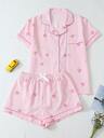 2pcs Plus Size Women Tulip Print Lapel Button Front Short Sleeve Top And Shorts Sleepwear Suit, Comfortable For Home Wear, Summer, Outfits