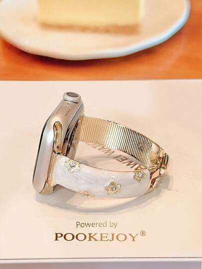 Elegant Floral Glitter Bracelet Strap Compatible With 38/40/41/42/44/45/46/49mm, Compatible With Apple Watch Strap Ultra/Se10/9/8/7/6/5/4/3/2/1 - Platinum - View 1