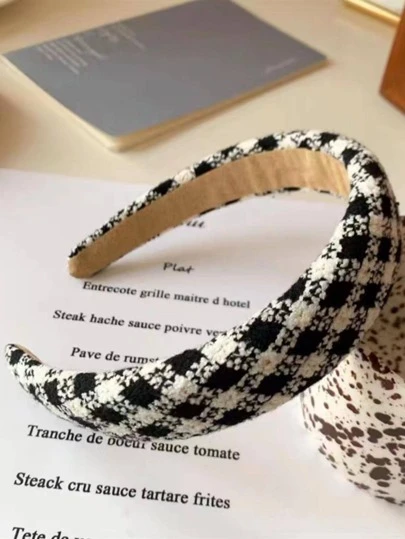 Elegant Plaid Pattern Headband Leopard Print - Black and White - View 1