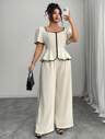 Elenzga Elegant Commuter Vest Waistcoat & Pleated Skirt 2 Pieces Set For Plus Size Women