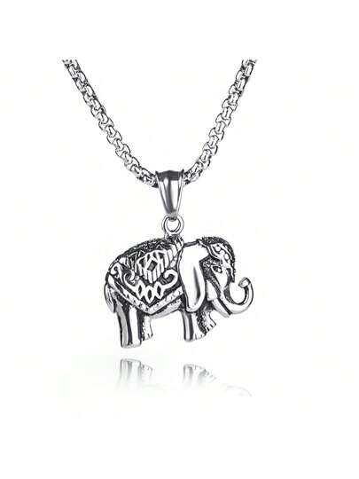 Elephant Pendant Necklace, Hip Hop Style Collarbone Chain, Minimalist Sweater Chain - Antique Silver - View 1