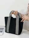 Fashionable Striped Women's Small Handbag, Casual Canvas Small Bag, Lightweight Foldable Small Square Bag, Black Letter Personalized Design, Can Hold Keys, Water Bottle, Phone And Personal Items, Suitable For Outings, Walking, And Carrying Pets