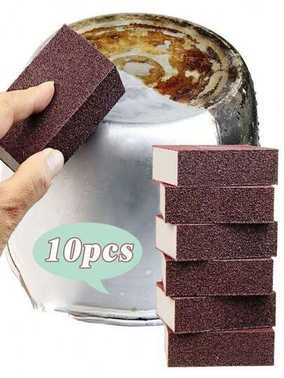 Emery Sand Sponge Scrubber, Multi-Functional Cleaning Tool, Powerful Stain & Rust Removal, Durable & Non-Sanding, Specialized For Cleaning Kitchen Stoves / Pot Bottoms / Tiles - Brown - View 10