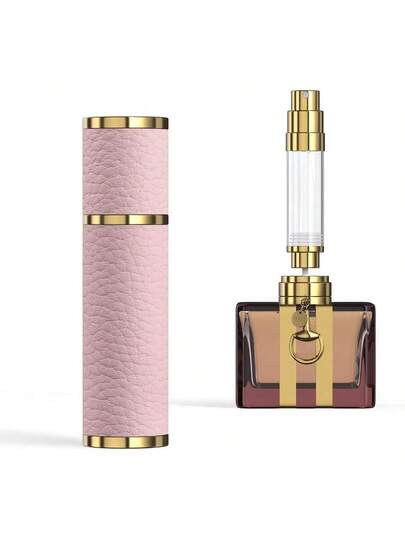 5ml Travel Perfume Atomizer Refillable Mini Portable Genuine Leather Cologne Sprayer Pocket Size Empty Fragrance Spray Bottle Gift For Women Men Pink - Pink - View 1