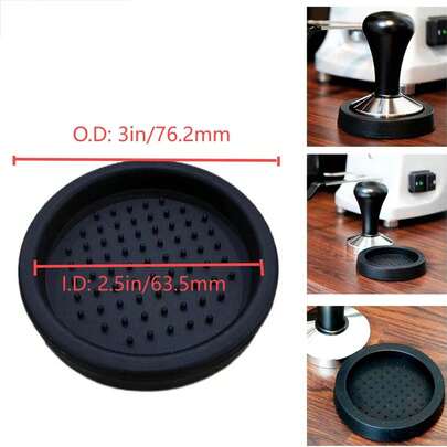 Tấm lót nén cà phê Espresso, hình tròn 3 inch, màu đen, bằng silicon, chống trượt, có một lỗ, dùng để nén bột cà phê, thích hợp cho quán cà phê và gia đình.