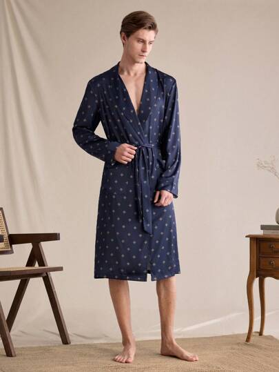 EverLounge Men's Front Tie Full Print Casual Robe, Long Sleeve - Multicolor - View 1