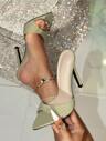 Women's Square Toe Mules Hollow Out Crystal High Heel Sandals