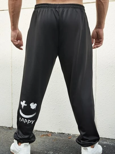 Manfinity Men Plus Cartoon & Letter Graphic Sweatpants - Black - View 1