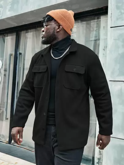 Manfinity Homme Men Plus Flap Pocket Overcoat - Black - View 1
