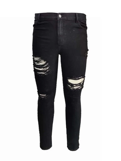 GENTILAND Men Plus Ripped Skinny Jeans - Black - View 1