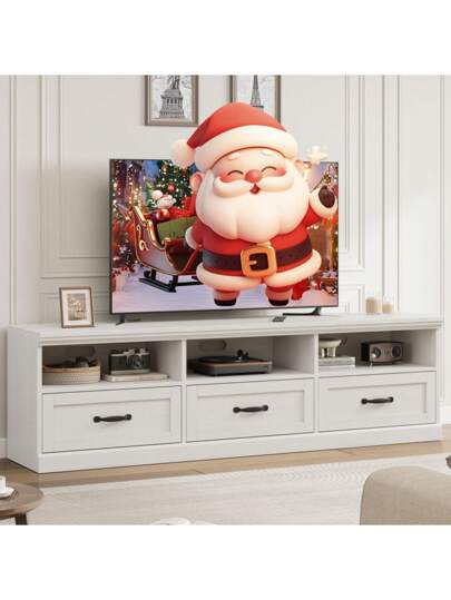 TV Stand For TVs Up To 75 Inches,Mid-Century Modern Entertainment Center With Storage Drawer,70" Media Television Console Table With Open Shelves,Wood Media Console TV Cabinet For Living Room - White - View 3